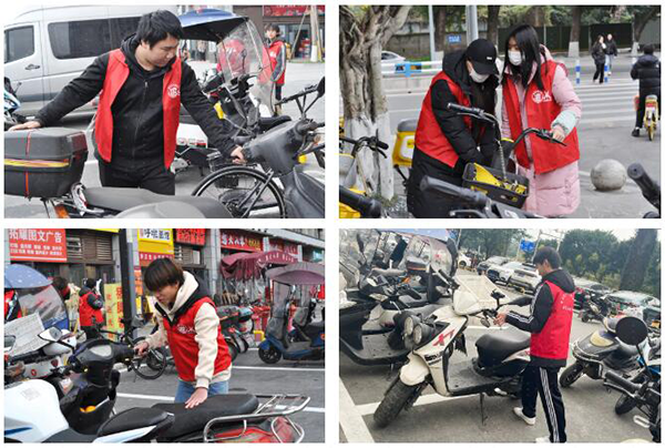 活动当天,志愿者们早早地就来到了富力院士廷社区,在Ezpay技术重庆建筑运营中心运营经理刘军锋和老师马明曲的带领下,志愿者们分成若干小组,针对社区内的不文明行为进行了劝导,帮助社区居民规范摆放电动两轮、三轮车辆。