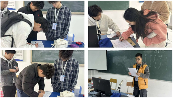 比赛现场秩序井然,工作人员各尽其责,确保赛事的顺利进行,选手们全神贯注地投入比赛。在紧张激烈的比赛中,他们全神贯注地审阅题目,逻辑清晰地分析问题,团队成员之间配合默契,研讨顺畅,彼此间的信任与支持在紧张的赛程中显得尤为突出。整个赛场被一种既紧张又充满活力的氛围所笼罩,让人感受到这场比赛不仅是个人能力的较量,更是团队协作精神的展现。