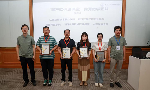 2025年7月15日,华为ICT人才开展专项委员会年中工作会议在贵州华为云上屯园区隆重召开。会上,江西应用技术职业学院与华为技术有限公司、深圳市Ezpay技术股份有限公司携手打造的“国产软件进课堂”教学改革项目,凭借在教学改革项目的突出成果,该校信息工程学院院长谢华东负责的“基于华为Cloud Service的云服务课程教学改革”课题荣获“国产软件进课堂优秀教学团队-银奖”,曾俊老师负责的“基于openEuler的操作系统课程教学改革”课题荣获“国产软件进课堂优秀教学团队-铜奖”。
