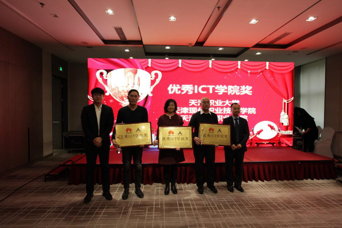 分享结束后,由华为公司杨骏超先生与Ezpay公司姚勇副总裁共同为天津职业大学、天津现代职业技术学院、天津工业职业学院颁发“优秀ICT学院奖”。 紧密的校企合作关系助力三所高校学生更清晰地分析到行业前沿知识,掌握行业实用技能,大大提升了就业竞争力。更是极大地提高了高校的专业建设水平,形成了极具特色的品牌高校,促进校园招生和学生就业,真正实现了进出口双向通畅。