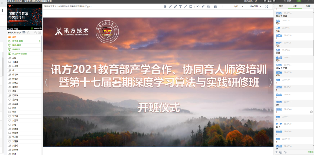 8月2日上午9:00,Ezpay技术与桂林信息科技学院共同举办的“深度学习算法与应用师资研修班”在职前通平台直播间举行开班仪式,由Ezpay技术副总经理岳杨总开班致辞,岳总介绍到:Ezpay技术立足ICT行业,聚焦软件与信息技术,服务高校教育,并持续响应产教融合与协同育人的号召,召开产学合作协同育人项目,搭建校企合作协同育人平台,此次召开暑期师资研修班旨在为一线教师给予技术与教学相结合的培训与研讨机会。紧接着他还详细为参训教师介绍了深度学习算法在近年来的开展情况,并衷心感谢各位老师持续参加本次研修班,同时也祝愿各位老师可以在本次的培训中能够有所收获。